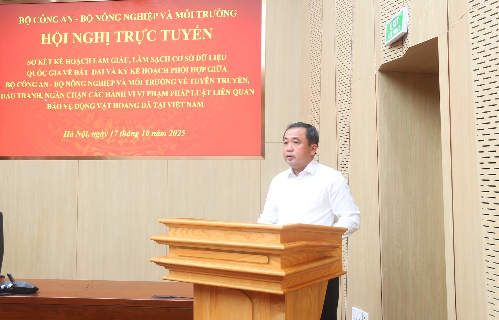 Phát biểu kết luận Hội nghị, thay mặt lãnh đạo Bộ Nông nghiệp và Môi trường, Bộ Công an, Quyền Bộ trưởng Bộ Nông nghiệp và Môi trường Trần Đức Thắng trân trọng cảm ơn tới các đơn vị, địa phương đã vào cuộc rất tích cực trong thực hiện Kế hoạch với nhiều thành tích nổi bật trong thời gian qua.
