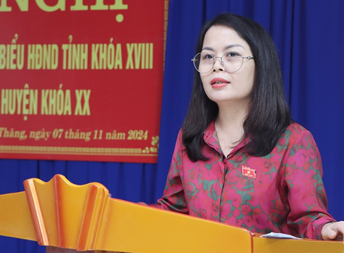 Thay mặt Tổ đại biểu HĐND tỉnh bầu tại huyện Cẩm Xuyên, đại biểu Hà Thị Việt Ánh ghi nhận những ý kiến phát biểu tâm huyết, trách nhiệm của cử tri; đồng thời làm rõ, giải trình và thông tin thêm một số nội dung mà cử tri quan tâm.