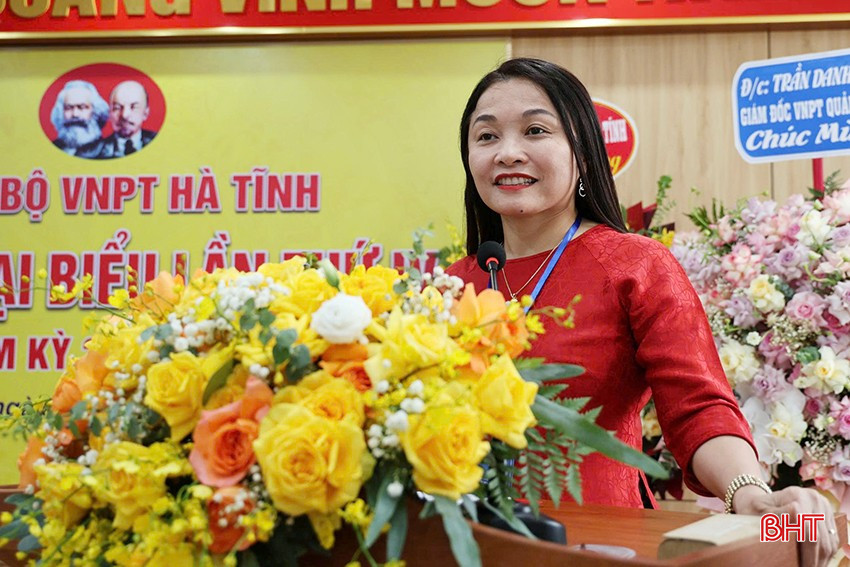 Phát biểu chỉ đạo đại hội, đồng chí Nguyễn Thị Hà Tân - Tỉnh ủy viên, Phó Bí thư chuyên trách Đảng ủy UBND tỉnh đề nghị Đảng ủy VNPT Hà Tĩnh tiếp tục đổi mới phương thức lãnh đạo của Đảng, phát huy vai trò, trách nhiệm người đứng đầu trong chỉ đạo, điều hành; triển khai quyết liệt các giải pháp thực hiện hiệu quả Nghị quyết 57-NQ/TW của Bộ Chính trị về đột phá phát triển khoa học, công nghệ, đổi mới sáng tạo và chuyển đổi số quốc gia.