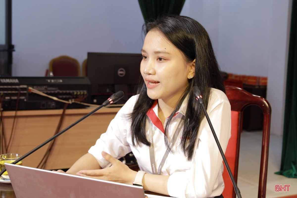 Chị Lê Thị Quỳnh Trang - cán bộ Viettel hướng dẫn sử dụng phần mềm Điều hành tác nghiệp trong các cơ quan Đảng.