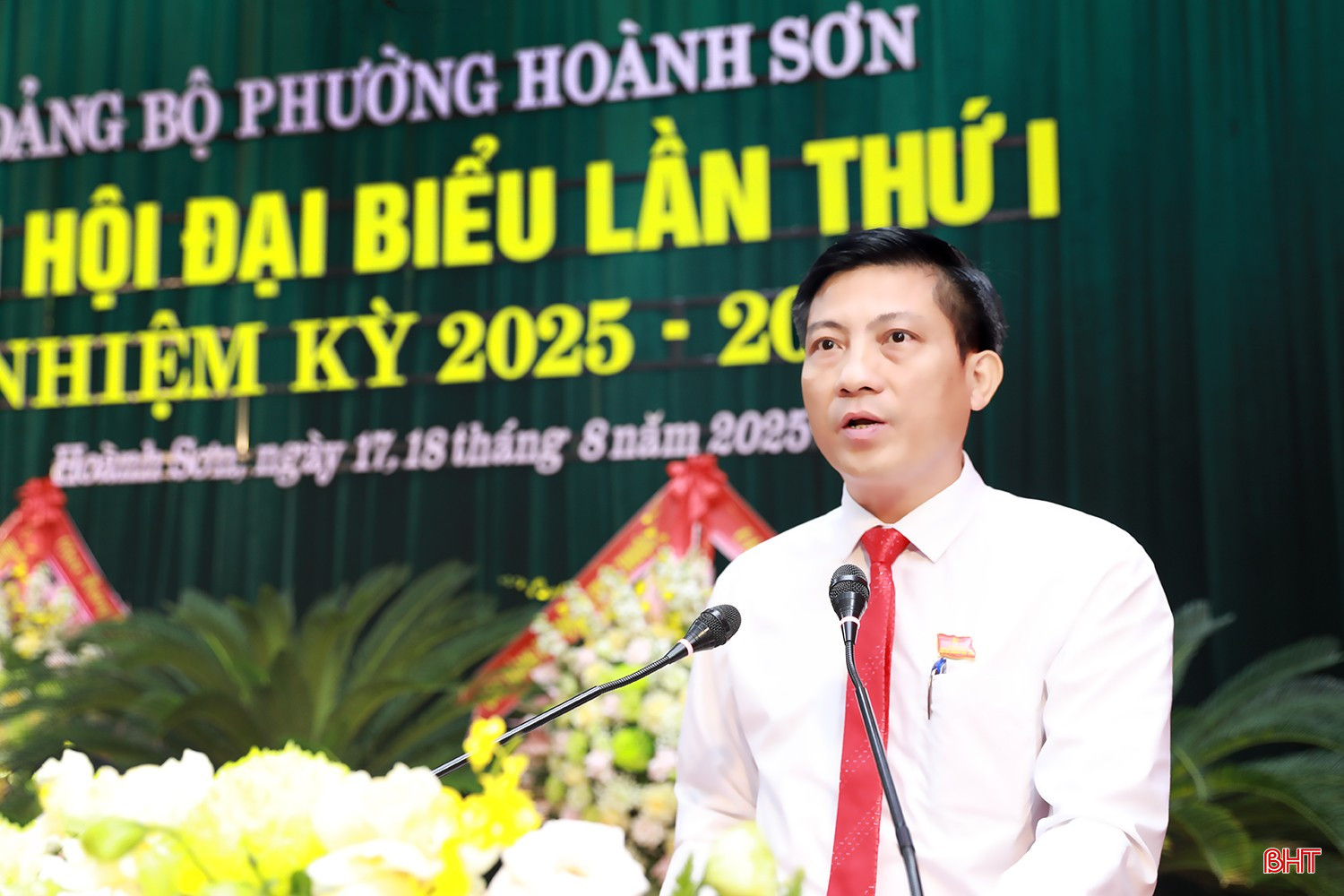Phó Chủ tịch UBND tỉnh đề nghị, nhiệm kỳ 2025 - 2030, Đảng bộ phường Hoành Sơn cần tập trung xây dựng Đảng bộ thật sự trong sạch, vững mạnh toàn diện; đổi mới phương thức lãnh đạo, tạo sự chuyển biến mạnh mẽ trong việc nâng cao năng lực lãnh đạo, sức chiến đấu của tổ chức đảng và đảng viên. Đồng thời, quan tâm phát triển đảng viên mới có chất lượng, tạo nguồn bền vững cho tổ chức cơ sở Đảng.