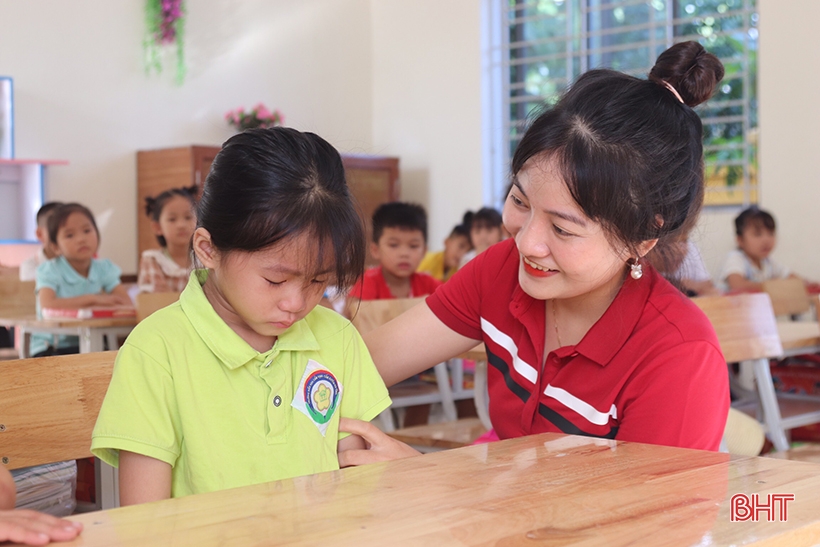... giúp các em vượt qua những bỡ ngỡ, nhanh chóng hòa nhập ngôi trường mới. Ảnh: Học sinh lớp 1 Trường Tiểu học Cẩm Vịnh (Cẩm Xuyên).