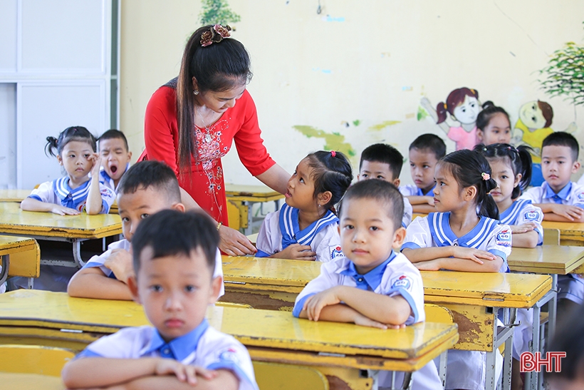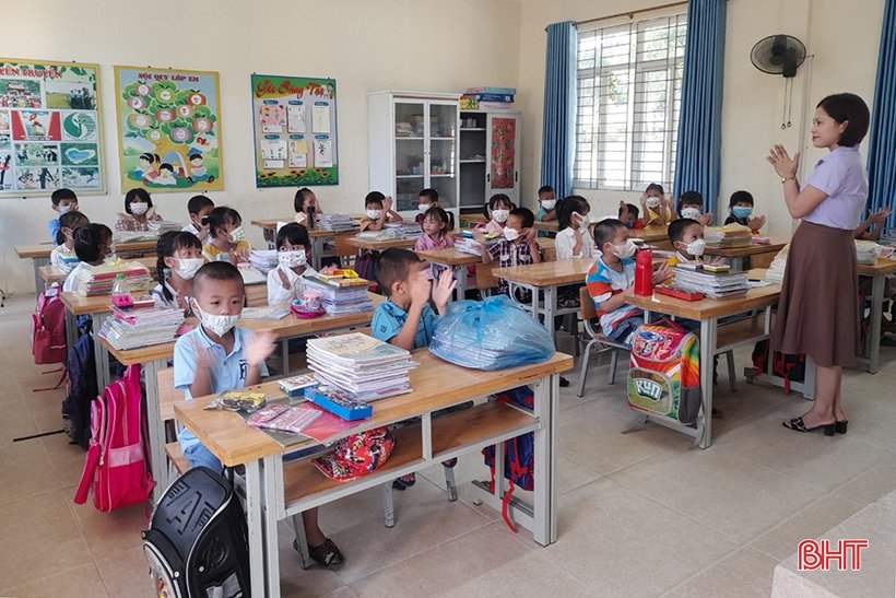 Hoc sinh Trường Tiểu học Hà Tông Mục (xã Tùng Lộc, Can Lộc) cũng đã bắt đầu những hoạt động đầu tiên tại lớp học.