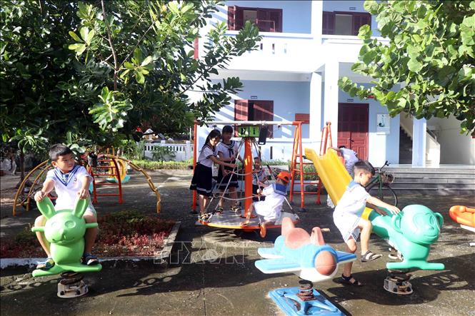 Học sinh nhỏ tại xã đảo Song Tử Tây vui chơi sau giờ học. Ảnh: Hữu Quyết/ TTXVN