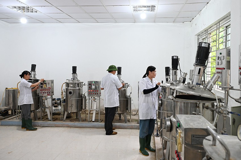 Cán bộ Trung tâm Khoa học, công nghệ và chuyển đổi số vận hành thiết bị sản xuất chế phẩm sinh học.