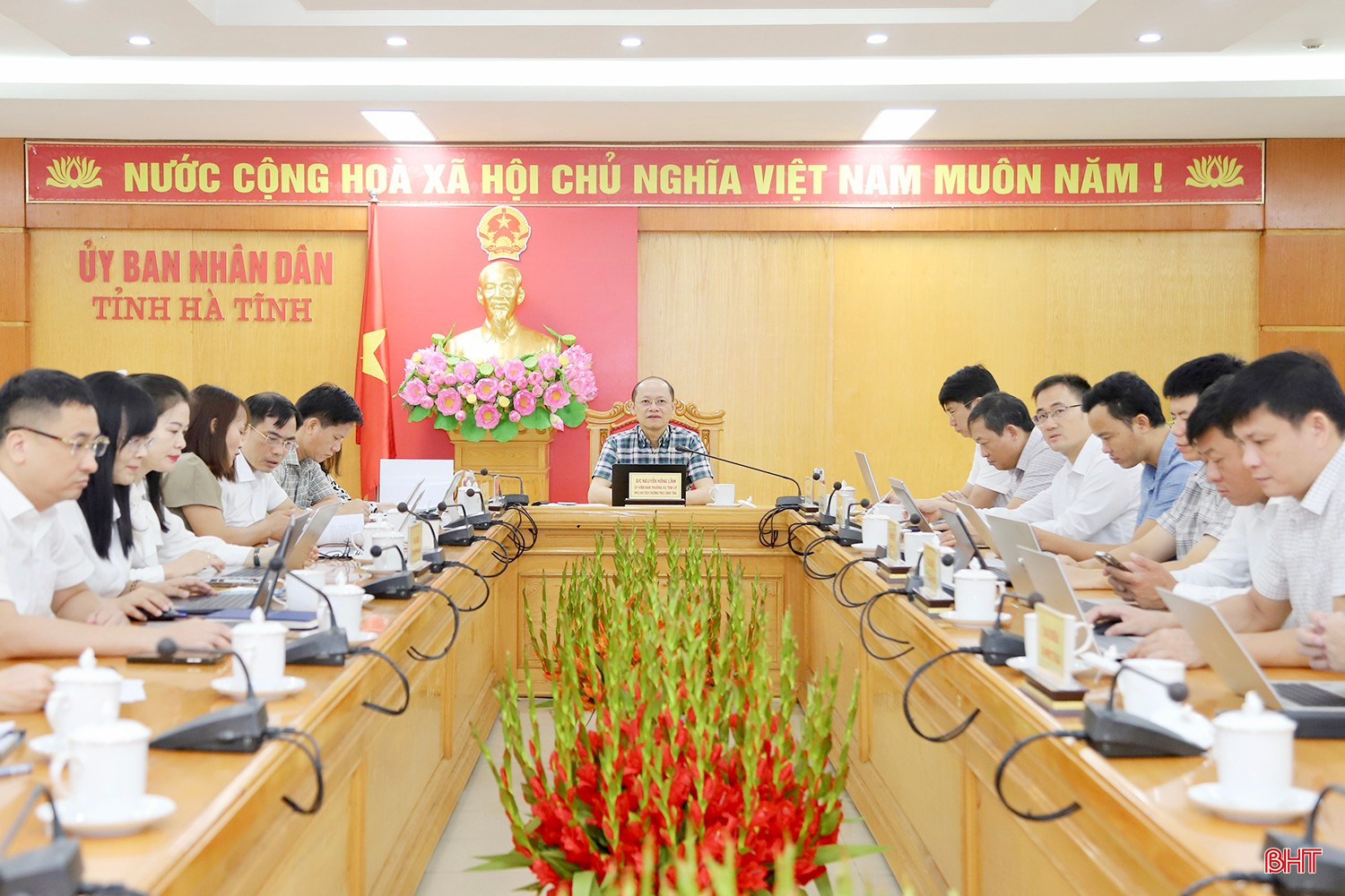 Phó Chủ tịch Thường trực UBND tỉnh Nguyễn Hồng Lĩnh điều hành điểm cầu Hà Tĩnh.