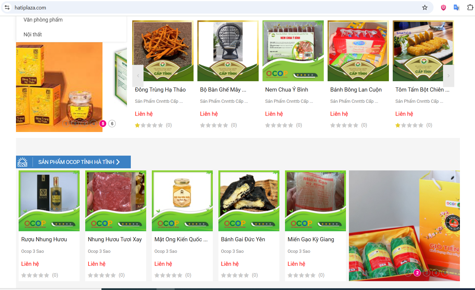 Tỉnh Hà Tĩnh hiện có hai địa chỉ Sàn TMĐT do nhà nước tổ chức quản trị, vận hành nhằm mục đích hỗ trợ người dân, doanh nghiệp trên địa bàn tỉnh quảng bá thương hiệu và chào bán sản phẩm là “hatiplaza.” và “hatinhtrade.com.vn”. Từ năm 2020, sàn TMĐT tỉnh Hà Tĩnh đã đồng hành cùng Chương trình OCOP trên địa bàn tỉnh góp phần nâng cao năng lực cạnh tranh, giúp mở rộng khả năng tiếp cận thị trường của người dân, HTX, doanh nghiệp tại địa phương. Với nhiều chính sách ưu đãi như: Miễn phí thành viên, duy trì gian hàng; hỗ trợ quảng bá, đào tạo đưa sản phẩm lên Sàn và fanpage “Sàn giao dịch thương mại điện tử tỉnh Hà Tĩnh”… Đến nay 100% sản phẩm OCOP đã có mặt trên các Sàn TMĐT tỉnh.