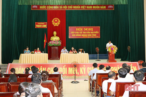 Chiều 8/6, Bí thư Tỉnh ủy - Chủ tịch HĐND tỉnh Lê Đình Sơn; Bí thư Thành ủy Hà Tĩnh Dương Tất Thắng cùng các thành viên Tổ đại biểu HĐND tỉnh bầu tại TP Hà Tĩnh có buổi tiếp xúc cử tri trước Kỳ họp thứ 15 - HĐND tỉnh khóa XVII tại phường Thạch Linh (TP Hà Tĩnh).