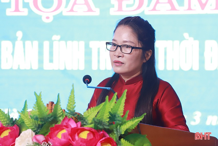 Phó Chủ tịch LĐLĐ huyện Can Lộc Nguyễn Thị Hồng Thủy chia sẻ kinh nghiệm cân bằng thời gian giữa công việc và chăm sóc, nuôi dạy con cái.