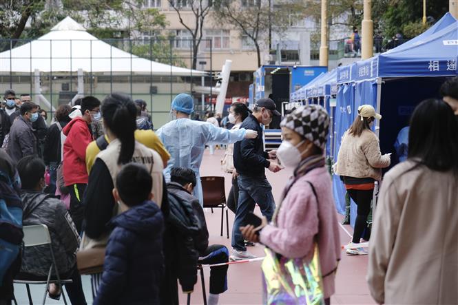 Người dân xếp hàng chờ xét nghiệm COVID-19 tại Hong Kong, Trung Quốc, ngày 8/2/2022. Ảnh: THX/TTXVN