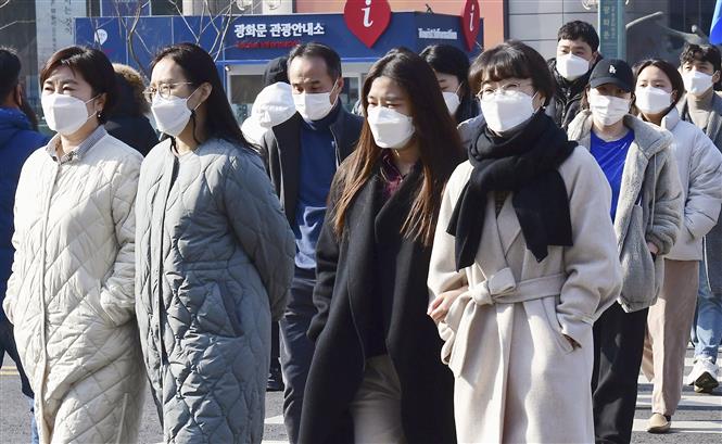 Người dân đeo khẩu trang phòng dịch COVID-19 tại Seoul, Hàn Quốc ngày 26/1/2022. Ảnh: Kyodo/TTXVN