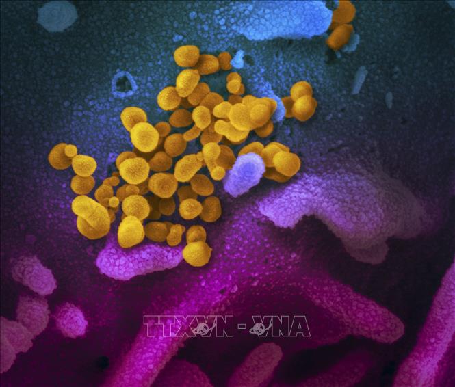 (ảnh do Viện Y tế quốc gia Mỹ cung cấp): Hình ảnh virus SARS-CoV-2 được soi dưới kính hiển vi. Ảnh: AFP/TTXVN