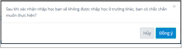 Bước 5: Nhấn Đồng ý để hoàn thành việc xác nhận nhập học.