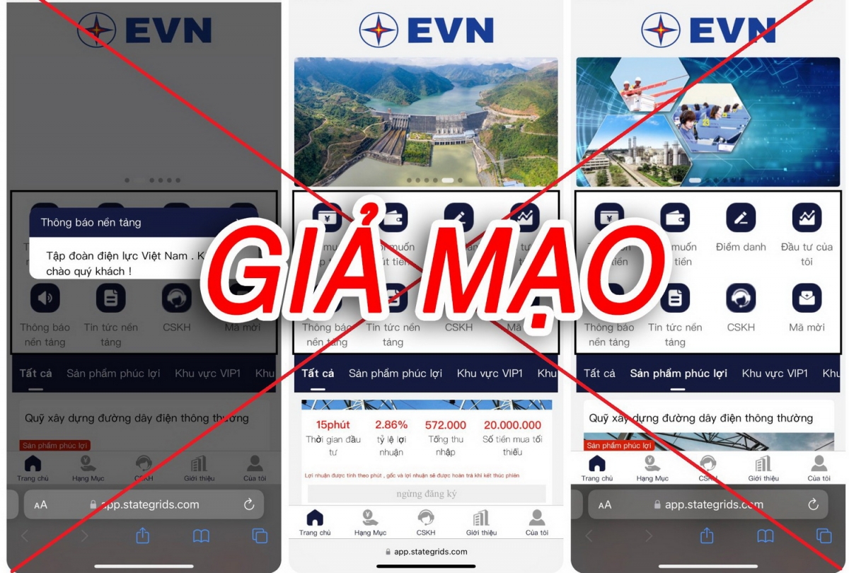 Qua xác minh, Tổng Công ty Điện lực miền Trung đã kịp thời báo cáo Tập đoàn Điện lực Việt Nam về website có tên miền là: https://app.stategrids.com/ sử dụng một số nội dung, hình ảnh, logo có thể gây hiểu nhầm là ấn phẩm thông tin thuộc Tập đoàn Điện lực Việt Nam nhằm lừa đảo khách hàng sử dụng điện.