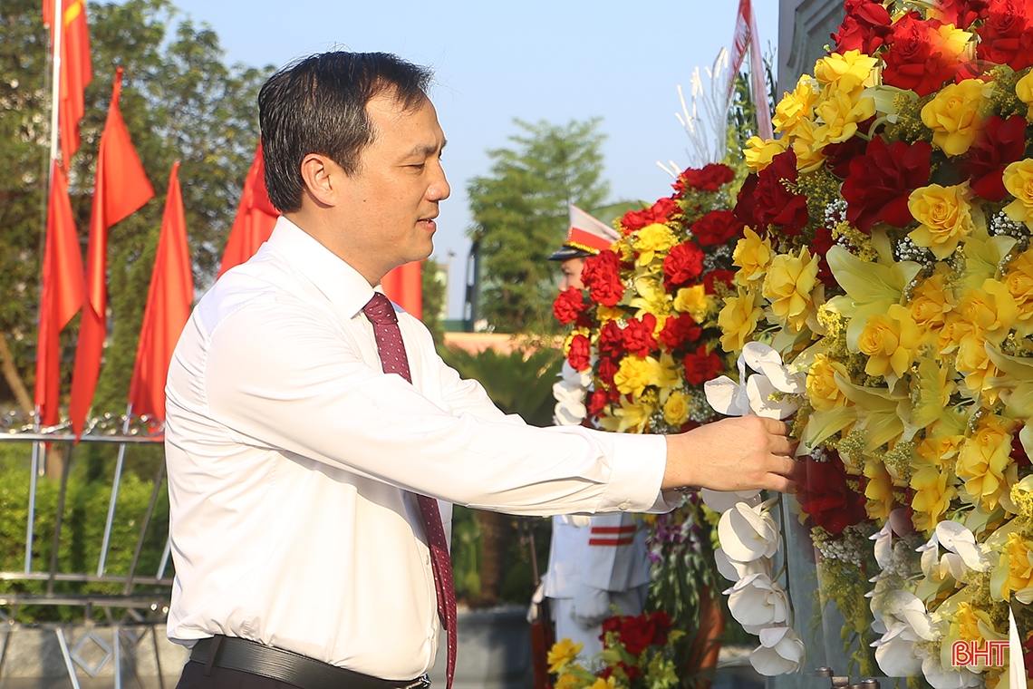 Bí thư Tỉnh ủy Hoàng Trung Dũng dâng vòng hoa tại Khu lưu niệm Bác Hồ về thăm Hà Tĩnh.