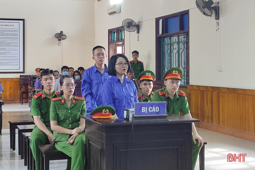 Hoàng Thị Khánh Ly (SN 1999) và Phạm Quang Huy (SN 2003), cùng trú huyện Thanh Liêm, tỉnh Hà Nam tại phiên xét xử sơ thẩm.