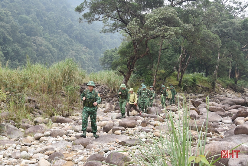 Lực lượng Kiểm lâm Vườn quốc gia Vũ Quang và cán bộ, chiến sỹ Đồn Biên phòng Hương Quang phối hợp tuần tra bảo vệ biên giới gắn với bảo vệ rừng.