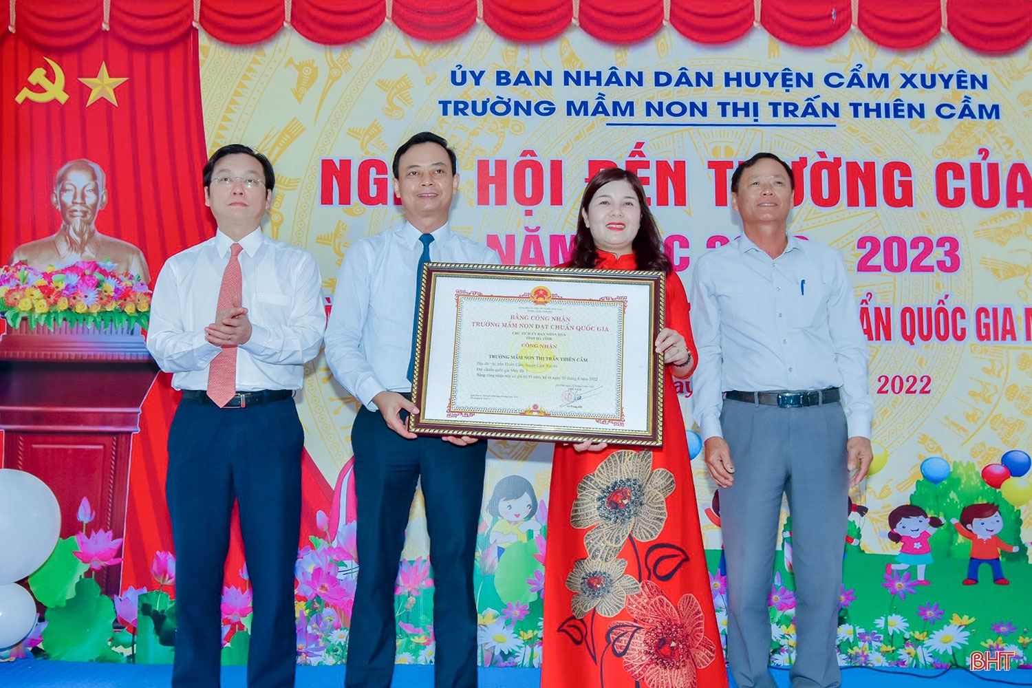 Năm 2022, Trưởng ban Tuyên giáo Tỉnh ủy Hà Văn Hùng cùng lãnh đạo huyện Cẩm Xuyên tặng bằng khen của Bộ GD&ĐT cho Trường Mầm non thị trấn Thiên Cầm. Ảnh tư liệu