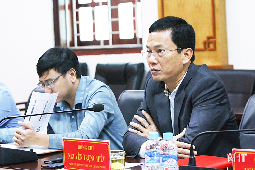 Chủ tịch UBND thành phố Hà Tĩnh Nguyễn Trọng Hiếu phát biểu ý kiến tại buổi làm việc.
