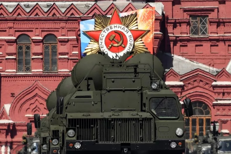 Hệ thống tên lửa phòng không S-400 Triumph của Nga di chuyển qua Quảng trường Đỏ trong cuộc duyệt binh Ngày Chiến thắng ở Moscow. Ảnh: AFP