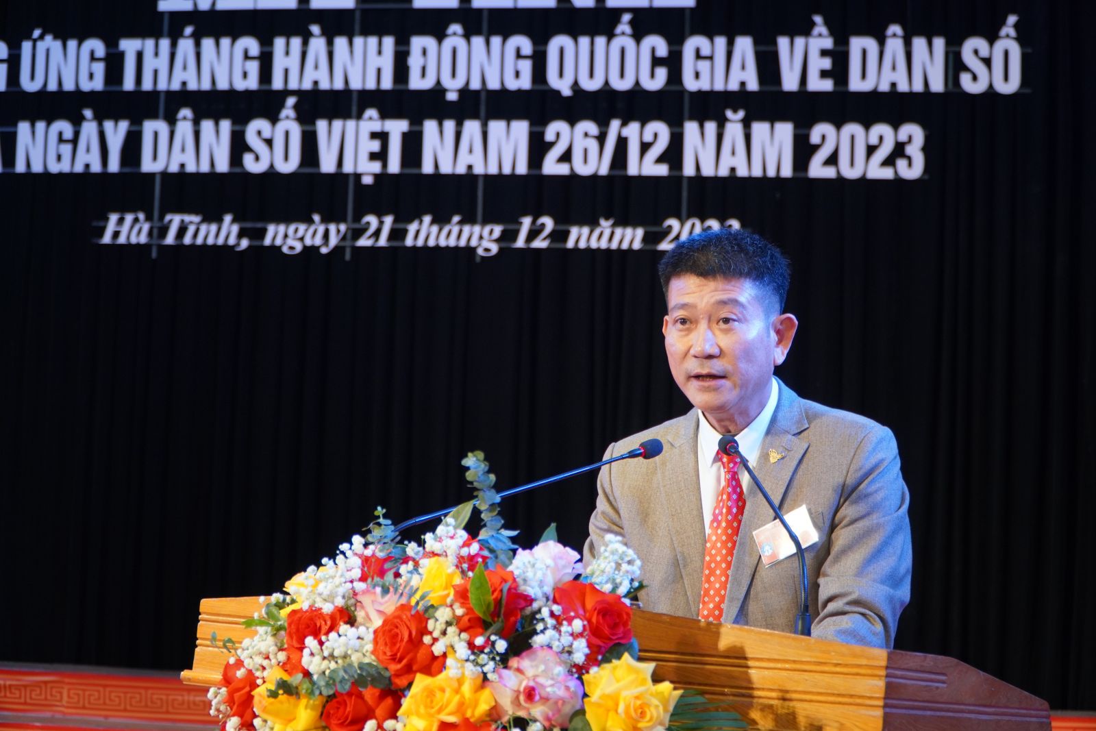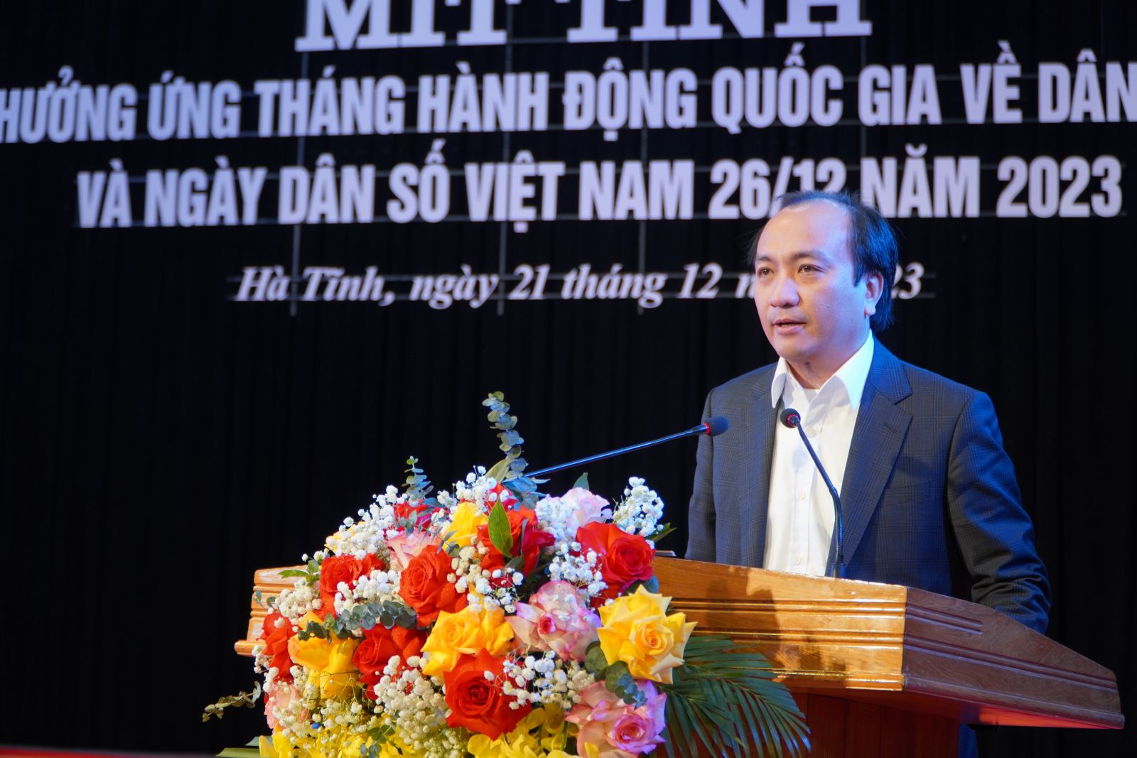 Phát biểu tại lễ mít tinh, Phó Chủ tịch UBND tỉnh Lê Ngọc Châu đánh giá cao những thành tích và kết quả mà công tác dân số đạt được trong thời gian qua. Tuy vậy, Hà Tĩnh vẫn là một trong những tỉnh có mức sinh, tỷ lệ sinh con thứ 3 cao....