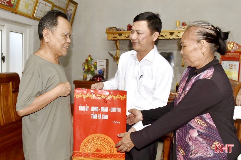 Phó Chủ tịch UBND tỉnh Lê Ngọc Châu thăm hỏi, tặng quà cho ông Trần Công Mậu (SN 1950, TDP 5, phường Đậu Liêu, TX Hồng Lĩnh) là thương binh hạng 1/4 nhân dịp ngày thương binh - liệt sỹ.