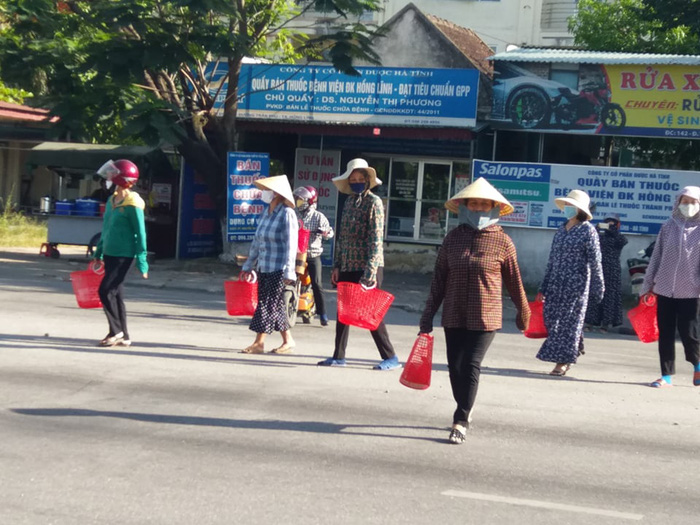 Hình ảnh bà con đi chợ mang theo làn nhựa
