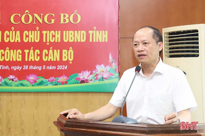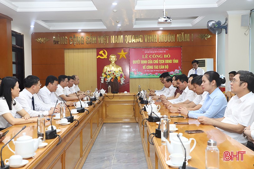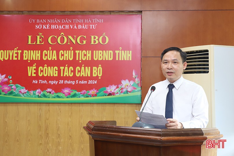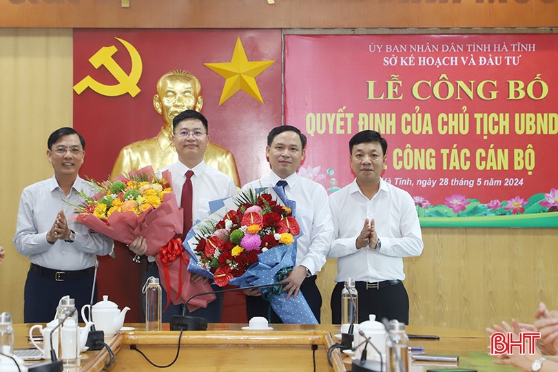 Tại hội nghị, lãnh đạo Sở Nội vụ đã công bố Quyết định số 1256/QĐ-UBND ngày 22/5/2024 của Chủ tịch UBND tỉnh về việc bổ nhiệm ông Nguyễn Đức Thắng – Trưởng phòng Kinh tế ngành (Sở KH&ĐT) giữ chức vụ Phó Giám đốc Sở KH&ĐT, thời hạn bổ nhiệm là 5 năm; Quyết định số 1266/QĐ-UBND ngày 22/5/2024 của Chủ tịch UBND tỉnh về việc điều động, bổ nhiệm ông Nguyễn Văn Chung – Phó Chủ tịch UBND thị xã Kỳ Anh giữ chức vụ Phó Giám đốc Sở KH&ĐT, thời hạn bổ nhiệm là 5 năm.
