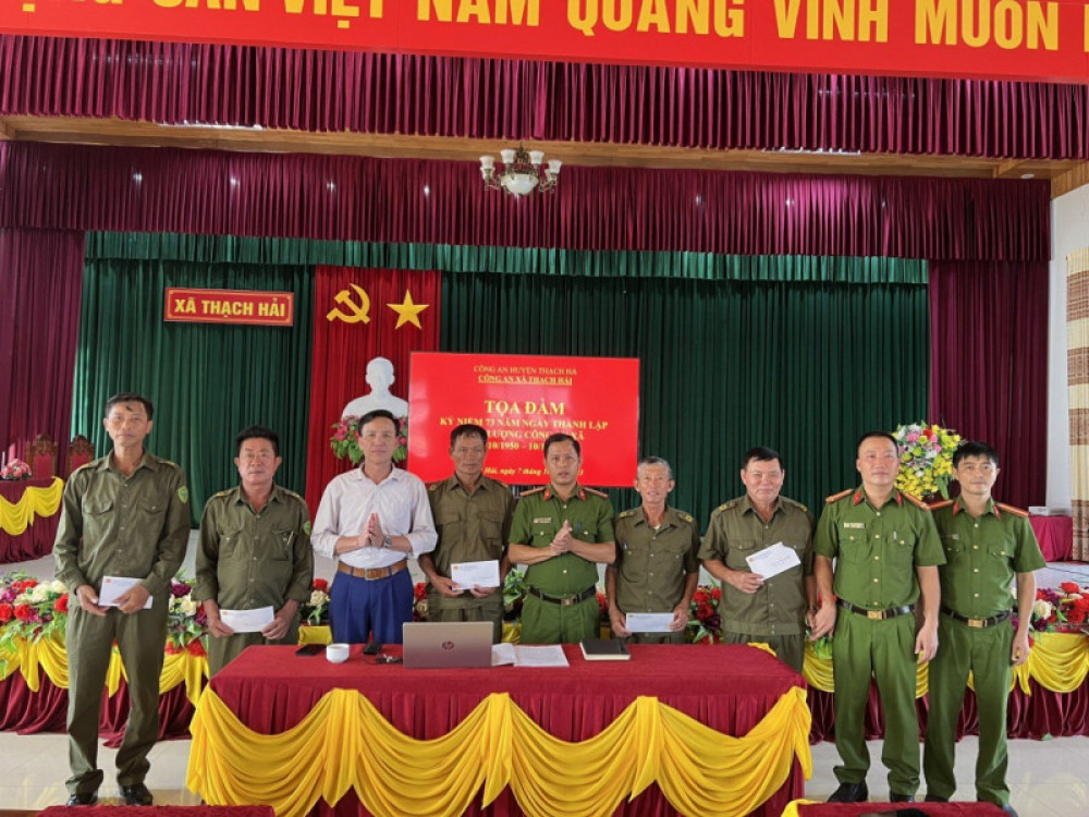 Tặng quà lực lượng Công an xã bán chuyên trách trong đảm bảo ANTT tại xã Thạch Hải, huyện Thạch Hà