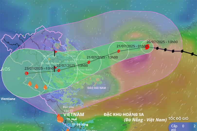 Hiện nay, đang hoạt động trên khu vực Bắc Biển Đông, cường độ rất mạnh (cấp 12, giật cấp 15). Đây là cơn bão mạnh, di chuyển nhanh. Theo dự báo của Trung tâm Dự báo Khí tượng thủy văn quốc gia, bão sẽ ảnh hưởng đến Bắc Bộ và Bắc Trung Bộ từ chiều tối ngày 21 tháng 7 năm 2025, gây gió mạnh, mưa lớn, nguy cơ cao xảy ra lũ ống, lũ quét, sạt lở đất ở trung du và miền núi, ngập lụt tại các vùng thấp trũng và đô thị.