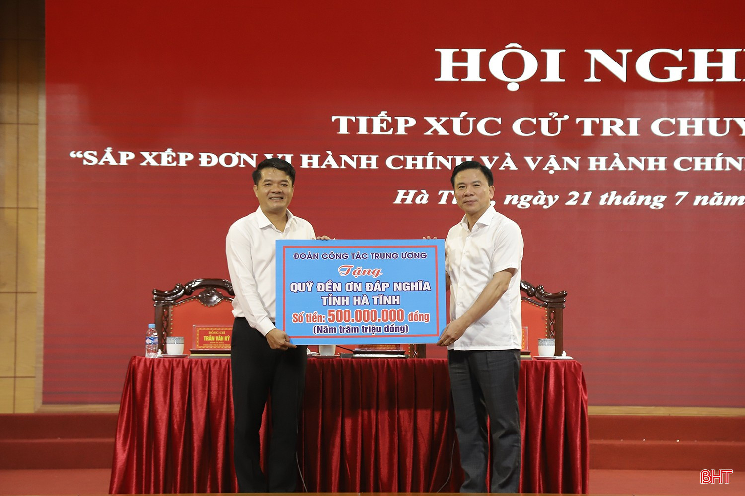Cũng tại hội nghị, đoàn công tác Trung ương đã trao tặng 500 triệu đồng cho Quỹ Đền ơn đáp nghĩa tỉnh Hà Tĩnh.