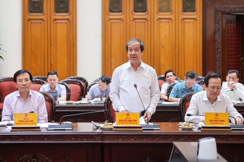 Bộ trưởng Nguyễn Kim Sơn đã đưa ra các kiến nghị cụ thể nhằm đảm bảo tiến độ và tính khả thi của kế hoạch xây dựng 100 trường vùng biên giới - Ảnh: VGP/Nhật Bắc
