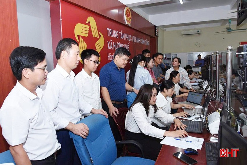 Lãnh đạo xã Hương Khê kiểm tra hoạt động vận hành Trung tâm Phục vụ hành chính công xã.