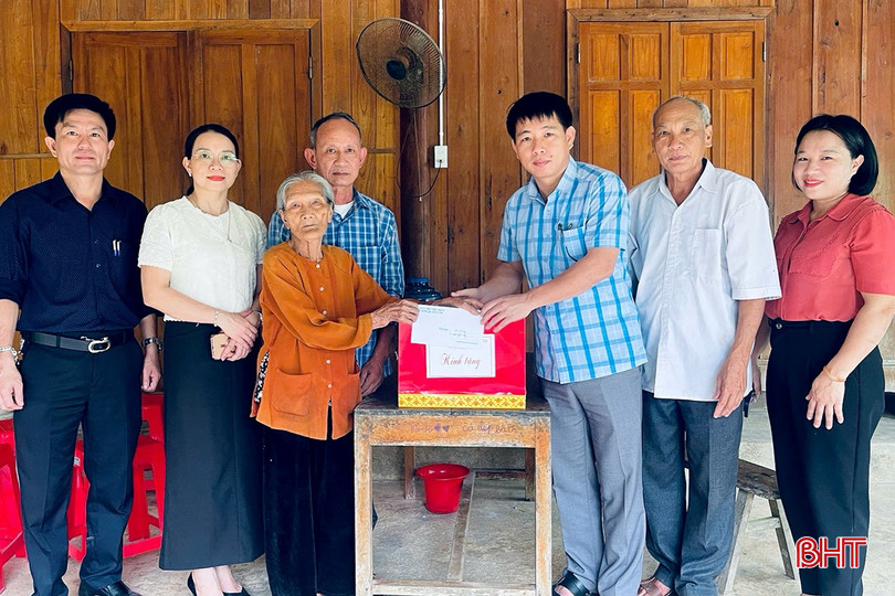 Phó Bí thư Thường trực Đảng ủy xã Nguyễn Thế Hùng tặng quà gia đình chính sách nhân dịp 27/7.