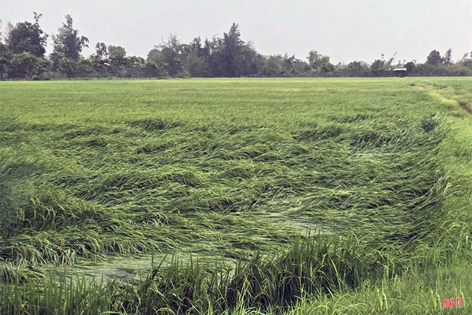 Nhiều cánh đồng lúa đang trong giai đoạn chín tới và chuẩn bị thu hoạch ở Hà Tĩnh bị ngâm ngập trong nước. Trong ảnh: Lúa đổ ngã ở xã Cẩm Hưng