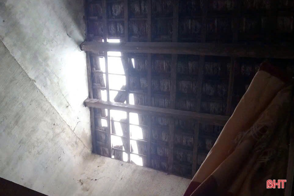 Gió làm hư hỏng mái nhà dân ở xã Hà Linh.