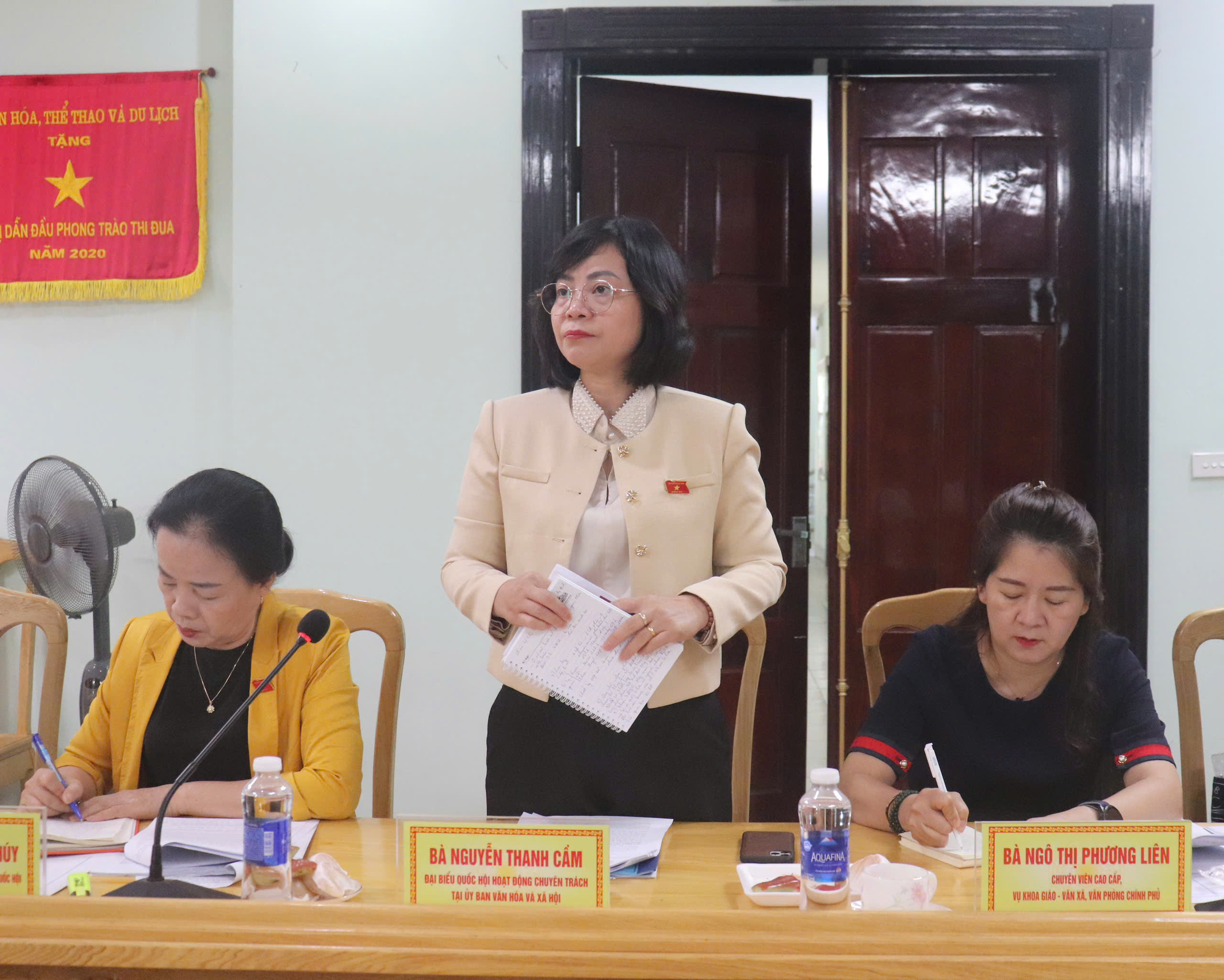 Phó Chủ nhiệm Ủy ban Văn hóa và Xã hội, Trưởng đoàn khảo sát Nguyễn Thị Kim Thúy phát biểu tại buổi làm việc