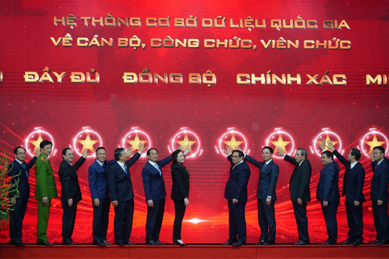 Thủ tướng Phạm Minh Chính và lãnh đạo các ban, bộ, ngành khai trương hệ thống Cơ sở dữ liệu quốc gia về cán bộ, công chức, viên chức vào ngày 29/12/2022.
