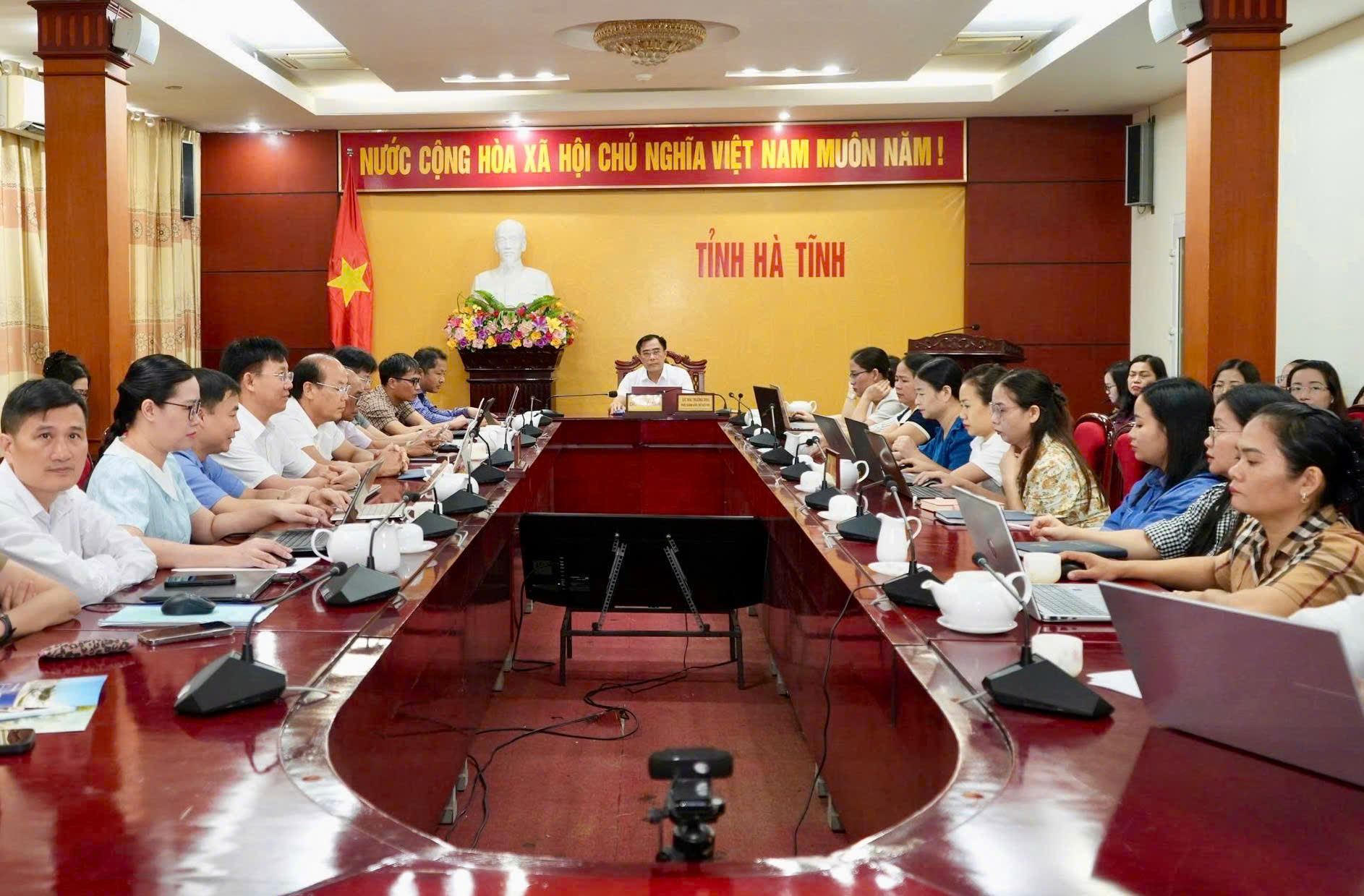 Điểm cầu trực tuyến tại Hà Tĩnh kết nối với Bộ Nội vụ và 34 tỉnh thành trên cả nước