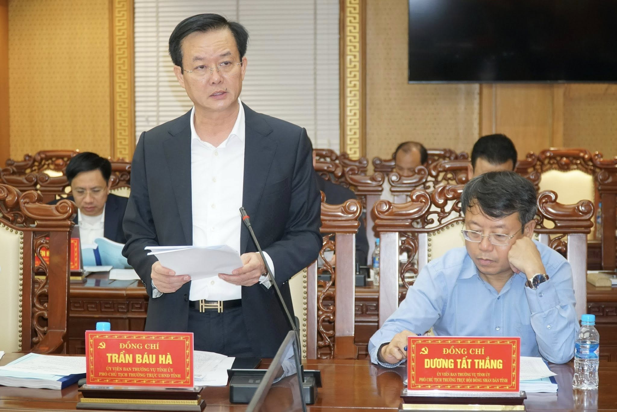 Phó Chủ tịch Thường trực UBND tỉnh Trần Báu Hà báo cáo báo cáo tình hình kinh tế - xã hội tại hội nghị.