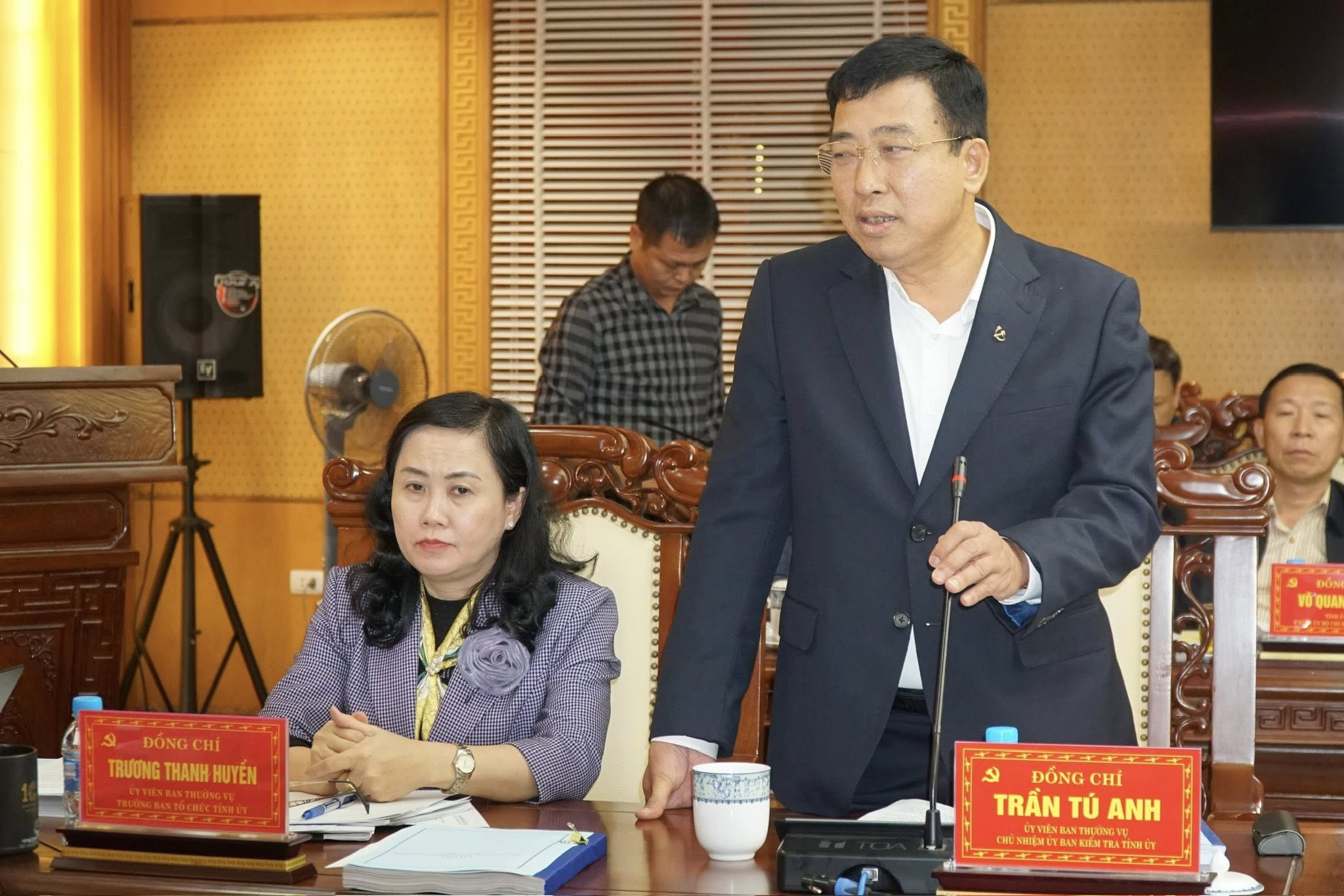 Chủ nhiệm UBKT Tỉnh ủy Trần Tú Anh và Phó Chủ tịch UBND tỉnh Hồ Huy Thành phát biểu tại hội nghị.