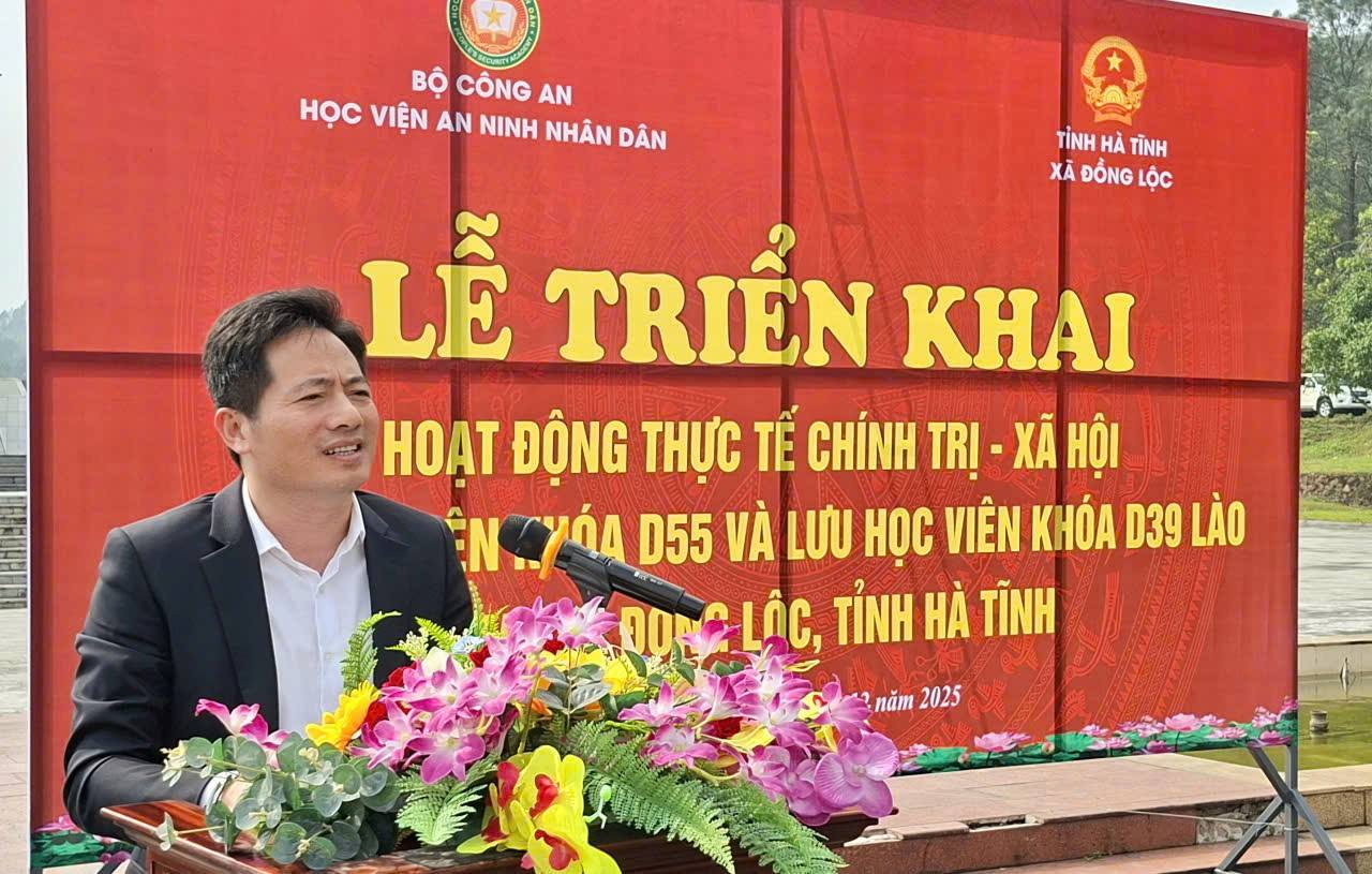 Phát biểu tại buổi lễ, đồng chí Dương Văn Tuấn – Bí thư Đảng ủy xã Đồng Lộc bày tỏ niềm vui khi địa phương được đón tiếp đoàn học viên Học viện An ninh Nhân dân. Đồng chí nhấn mạnh, đây là dịp quan trọng để học viên vận dụng kiến thức đã học vào thực tiễn, đồng thời là cơ hội để các học viên tìm hiểu sâu hơn về tình hình phát triển kinh tế – xã hội, quốc phòng – an ninh tại cơ sở. Xã Đồng Lộc cam kết tạo mọi điều kiện thuận lợi để các học viên hoàn thành tốt nội dung thực tế.