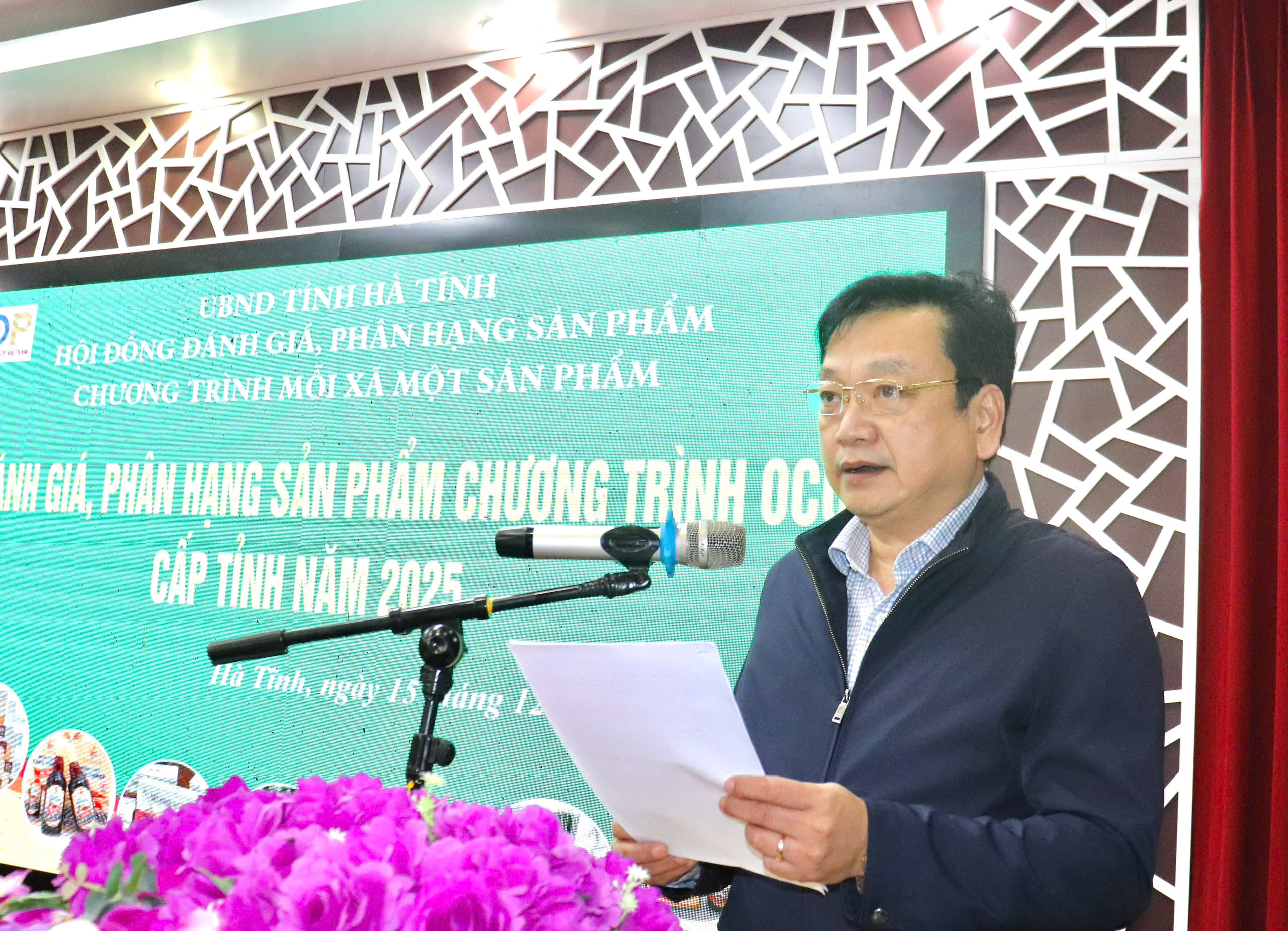 Phát biểu chỉ đạo tại cuộc họp, Phó Chủ tịch UBND tỉnh Hồ Huy Thành nhấn mạnh: Thời gian qua, các sản phẩm OCOP đã góp phần quan trọng trong nâng cao giá trị sản xuất, tạo việc làm, tăng thu nhập cho người dân, đồng thời khẳng định thương hiệu sản phẩm Hà Tĩnh trên thị trường trong và ngoài nước. Với tinh thần “OCOP Hà Tĩnh – Chất lượng làm nên thương hiệu”, đồng chí đề nghị các thành viên Hội đồng chấm điểm nghiêm túc, độc lập, khách quan; đánh giá đúng thực chất để lựa chọn những sản phẩm thực sự xứng đáng, góp phần phát triển chương trình OCOP của tỉnh ngày càng hiệu quả, bền vững.