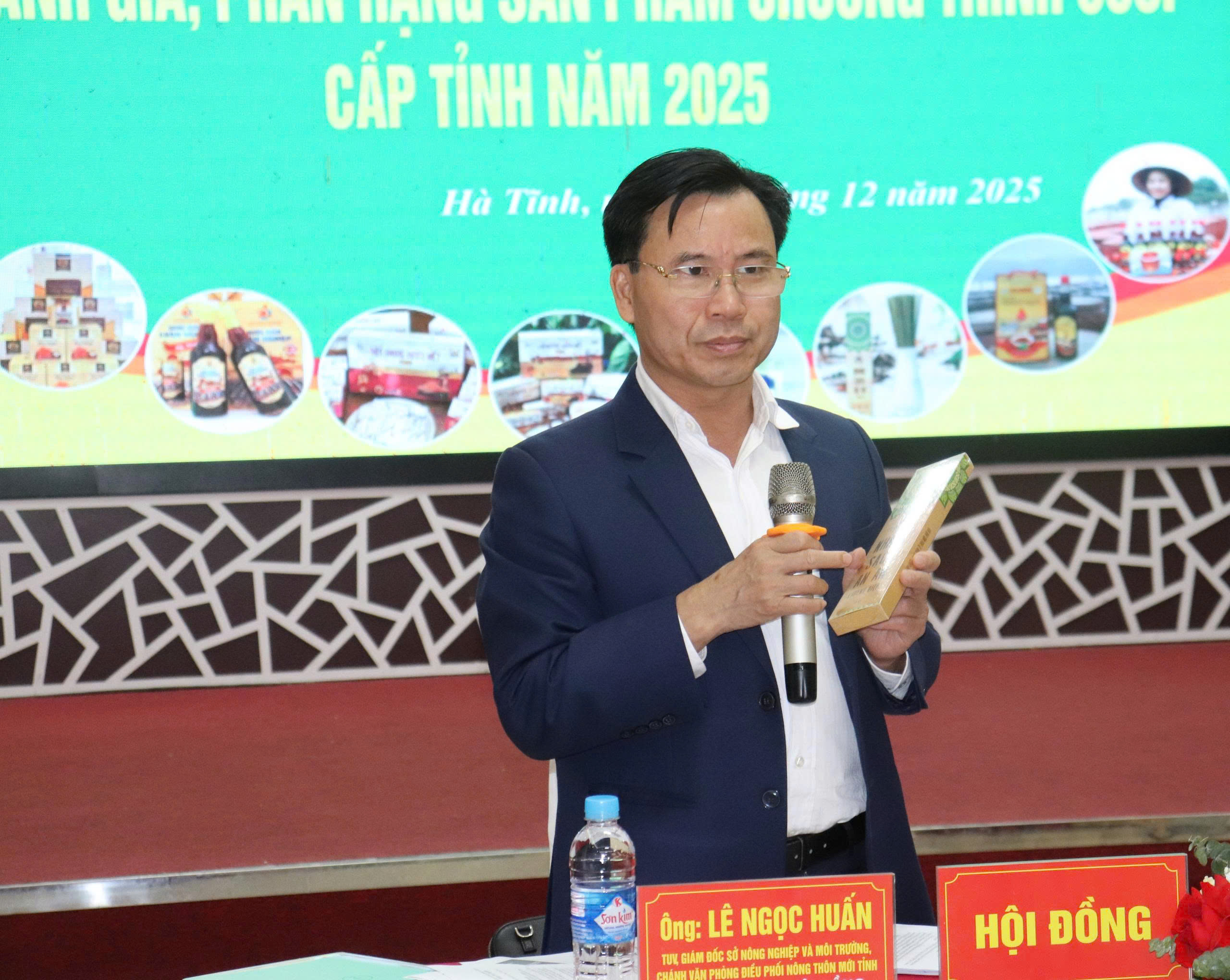 Giám đốc Sở Nông nghiệp và Môi trường Lê Ngọc Huấn nhấn mạnh: “Sản phẩm OCOP phải thực sự là thương hiệu, tạo niềm tin cho người tiêu dùng. Việc đánh giá cần chính xác, thực chất để nâng cao chất lượng và giá trị sản phẩm trên thị trường.”