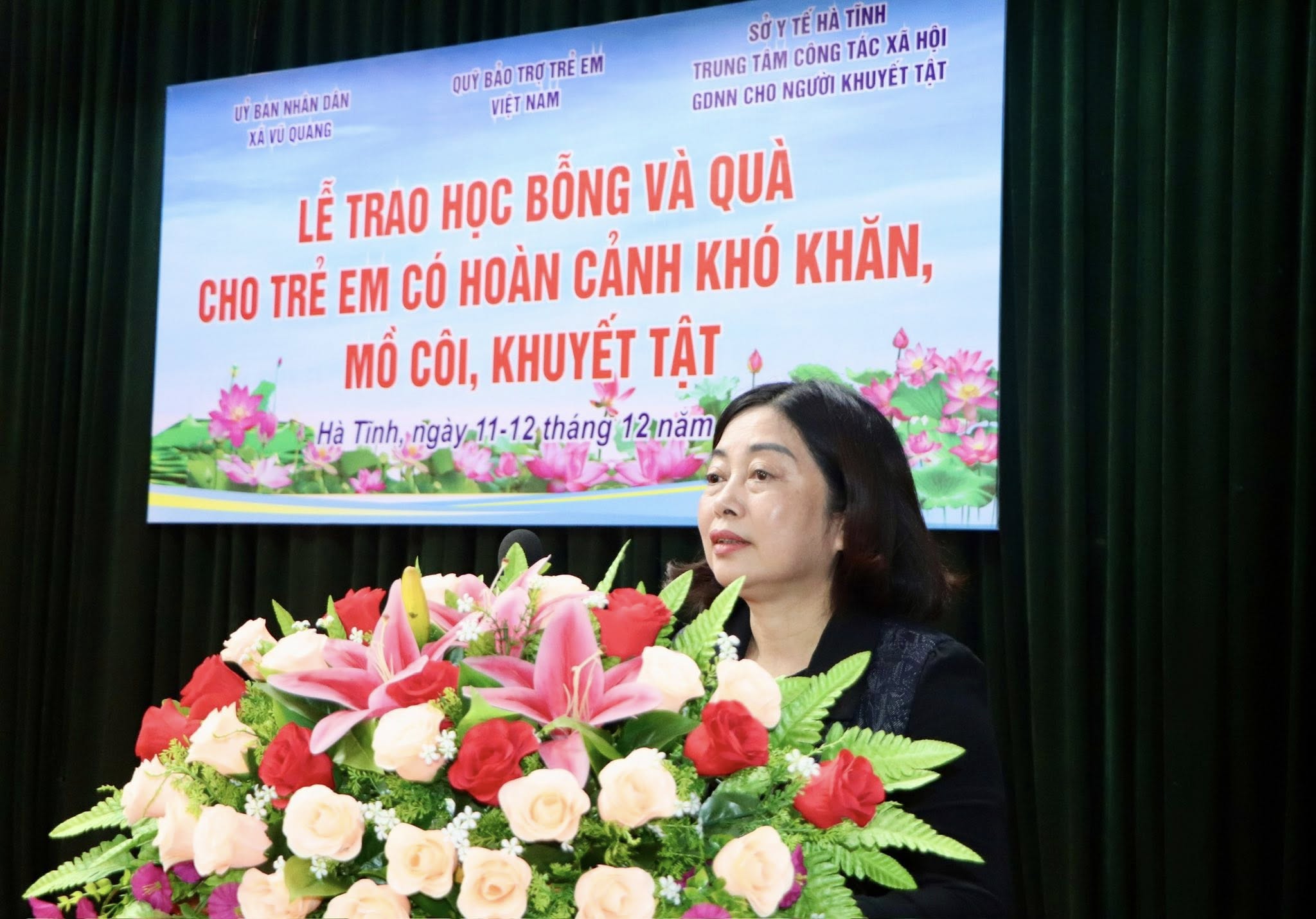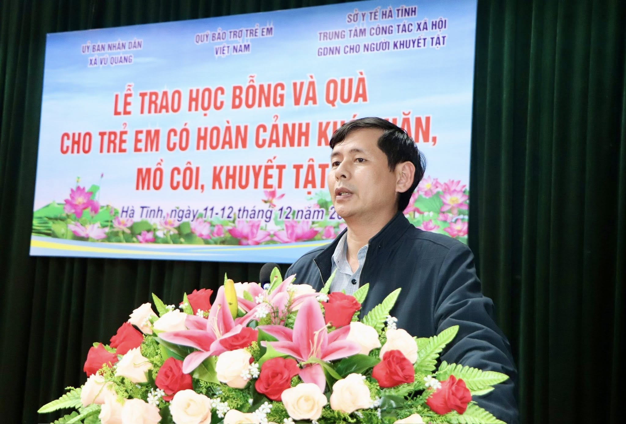 Phát biểu tại chương trình, đồng chí Tô Minh Hoài – Phó Chủ tịch UBND xã Vũ Quang bày tỏ sự trân trọng và cảm ơn sâu sắc đối với sự quan tâm, đồng hành của Trung tâm Công tác xã hội – Giáo dục nghề nghiệp cho người khuyết tật trong công tác chăm lo cho trẻ em yếu thế trên địa bàn. Đồng chí khẳng định, những suất học bổng và phần quà tuy không lớn về vật chất nhưng mang ý nghĩa nhân văn sâu sắc, kịp thời sẻ chia khó khăn, tiếp thêm niềm tin và động lực để các em tiếp tục vững bước trên con đường học tập.