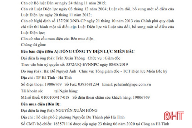 Thực hiện chỉ đạo của Tổng Công ty Điện lực miền Bắc tại văn bản số 5052/EVNNPC-KD ngày 25/9/2020 về việc triển khai chương trình số hóa hợp đồng mua bán điện sinh hoạt, Công ty Điện lực Hà Tĩnh đã và đang đẩy mạnh chuyển đổi hợp đồng trên bản giấy sang hợp đồng điện tử.