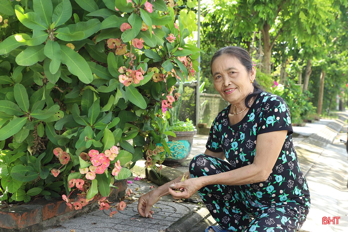 Tại thôn Bắc Thượng (phường Hà Huy Tập), người dân phấn khởi chung tay vệ sinh môi trường, chỉnh trang khu dân cư, dọn dẹp khuôn viên nhà cửa để duy trì môi trường sống xanh - sạch - đẹp.