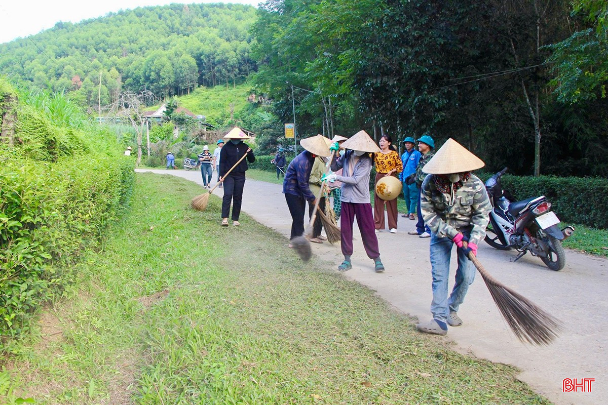 Còn tại thôn Kỳ Tây (xã Cổ Đạm), những ngày cuối tuần, từ các tuyến đường liên thôn đến các ngõ xóm, hình ảnh bà con cùng nhau phát cỏ, quét rác, cắt tỉa cây xanh đã trở thành hoạt động quen thuộc ở nhiều địa phương.