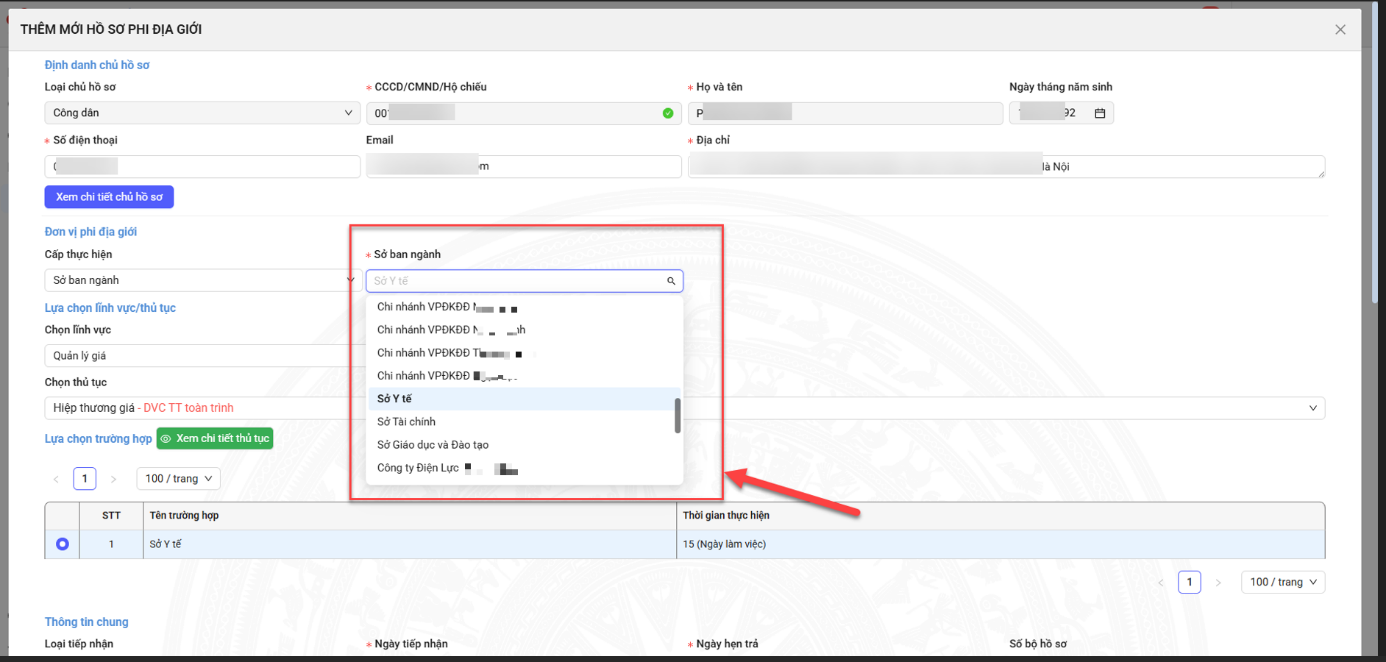 − Bước 3: Chọn đơn vị sẽ thực hiện xử lý thủ tục hành chính