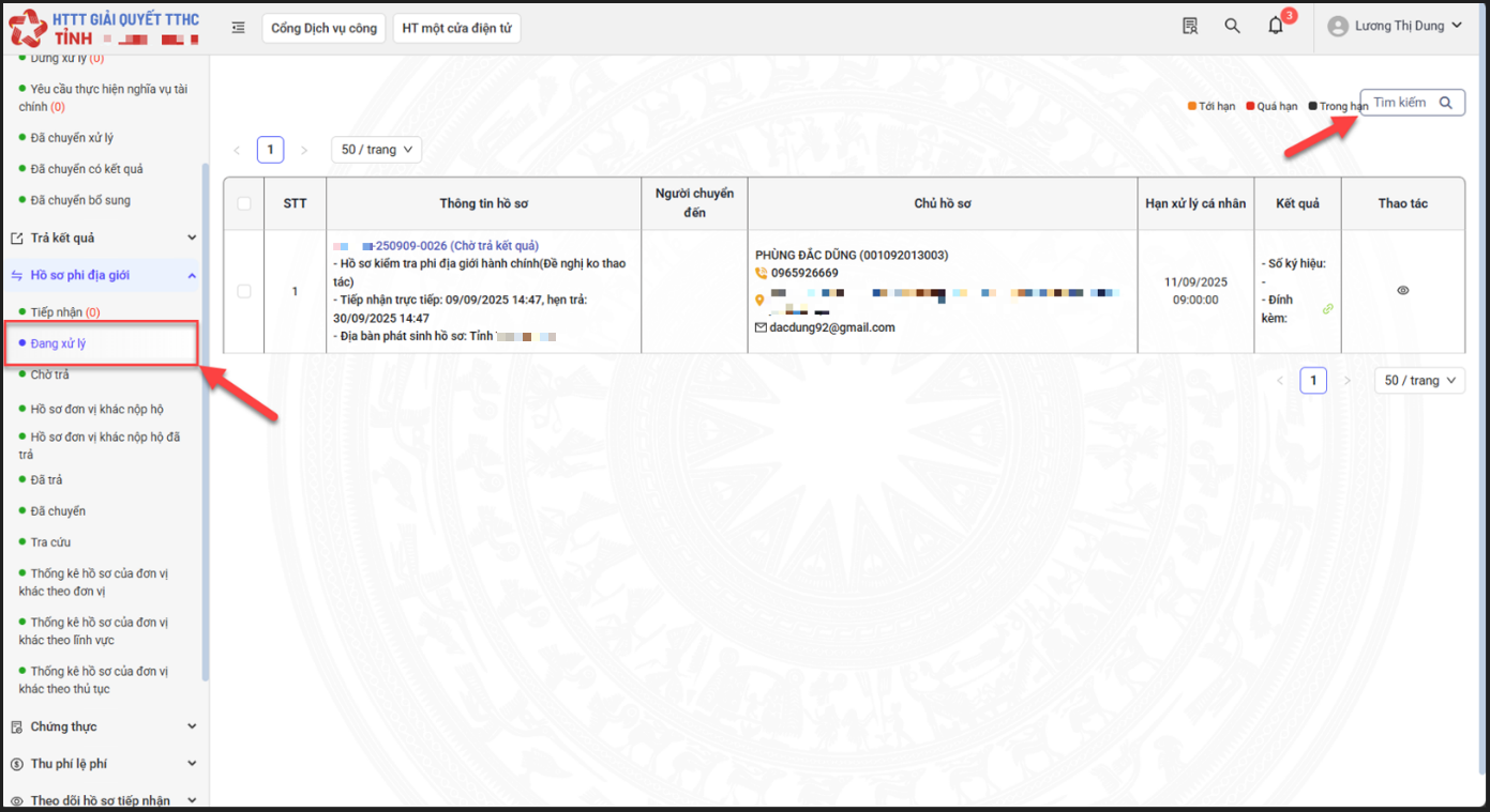 Để xem tình trạng xử lý hồ sơ đã chuyển phi địa giới đã chuyển. Cán bộ tiếp nhận chọn: Hồ sơ phi địa giới Đang xử lý